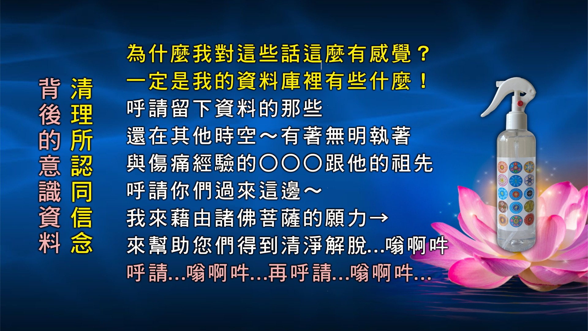 呼請還在其他時空有無明執著與傷痛經驗的〇〇〇及祖先們,